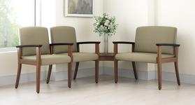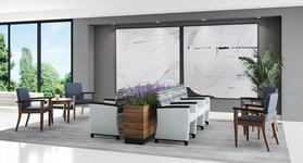 The Facelift3 Evolve Guest, Tandem, and Lounge Seating, incorporates a fully exposed wood or urethane arm and wall saver feature. Trinity's ever expanding Facelift Collection features Velcro attached upholstery, antimicrobial moisture barrier and easily replaced components. Everything is renewable, including the legs, cushions, and suspension system. Three distinct styles of renewable seating include lounge chairs, sofas, guest & tandem seating, ottomans, benches & tables. Made in the USA with a lifetime warranty.